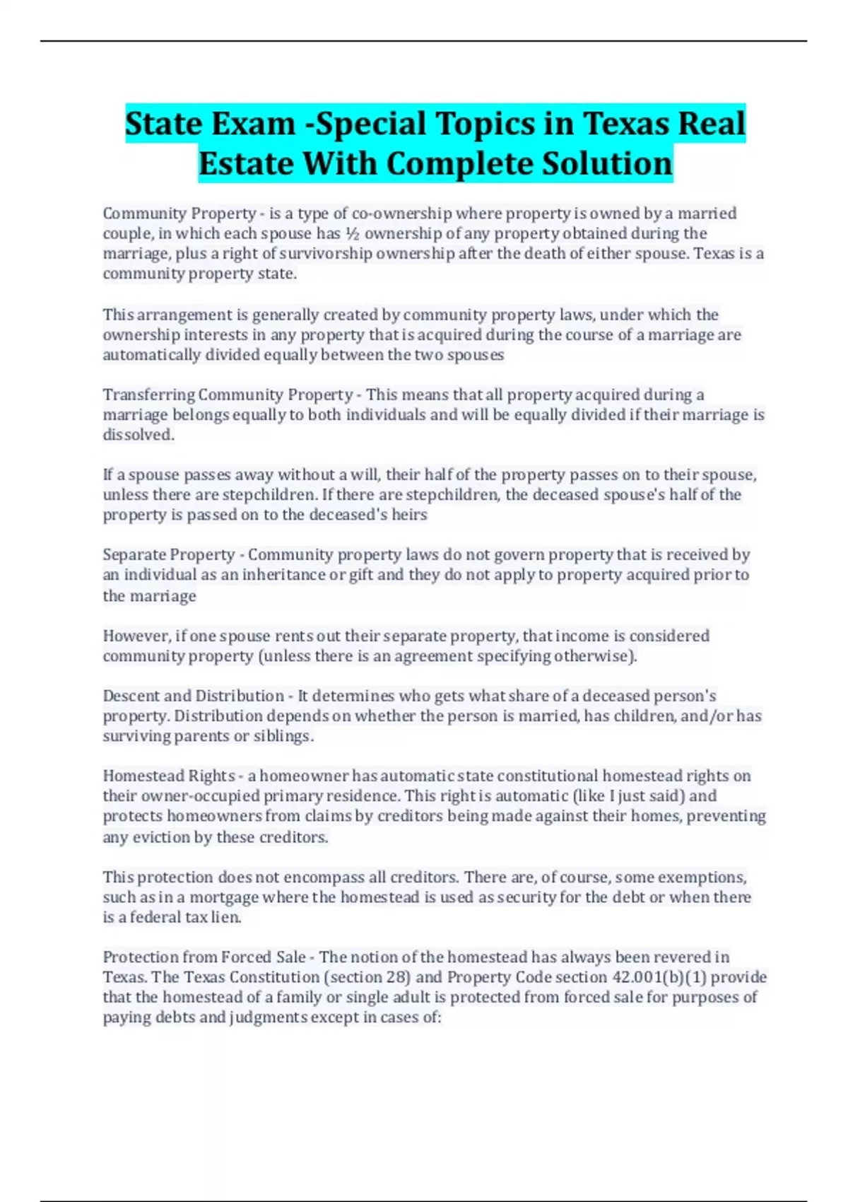 *State Exam -Special Topics in Texas Real Estate With Complete *